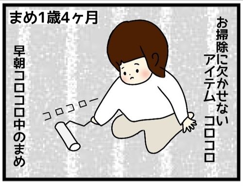1歳4か月 娘の成長絵日記 今日も元気! 1歳4ヶ月のまめ。お掃除のコロコロが好きな子供は多い気がする。 まめも大好きでよくコロコロ。 移動する時も右手にはコロコロ。 そんなまめのお掃除好きエピソード! コロコロまめ 朝目覚めて10秒でコロコロするまめ…